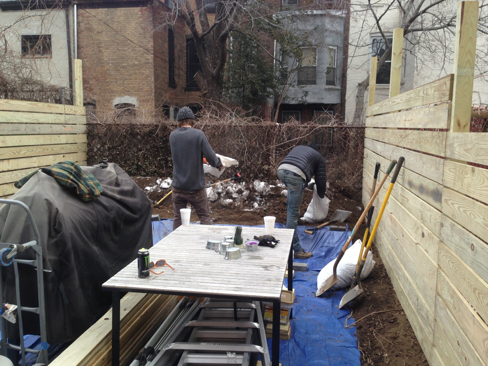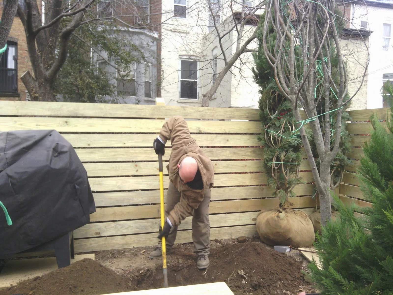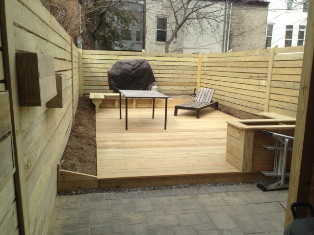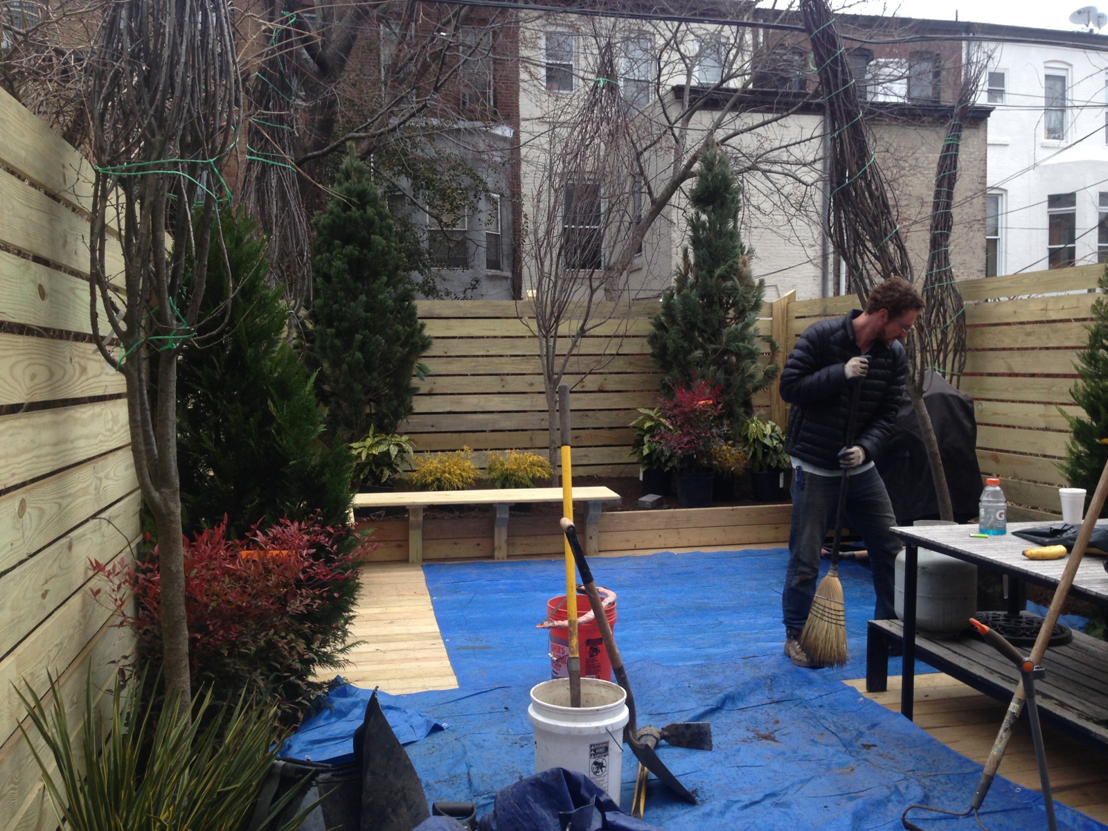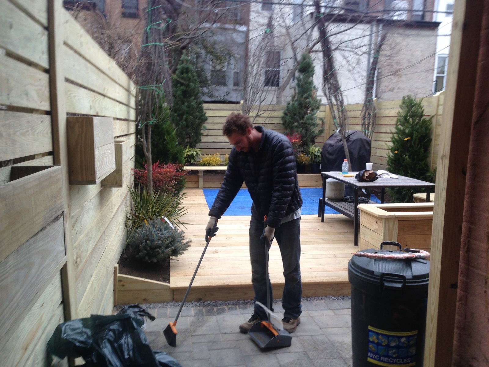 Below will be a series of photos of a typical townhouse rear yard landscape design and build taking NY Plantings about 2 weeks. a winter renovation of this outdoor space and planting when the ground was rock solid.