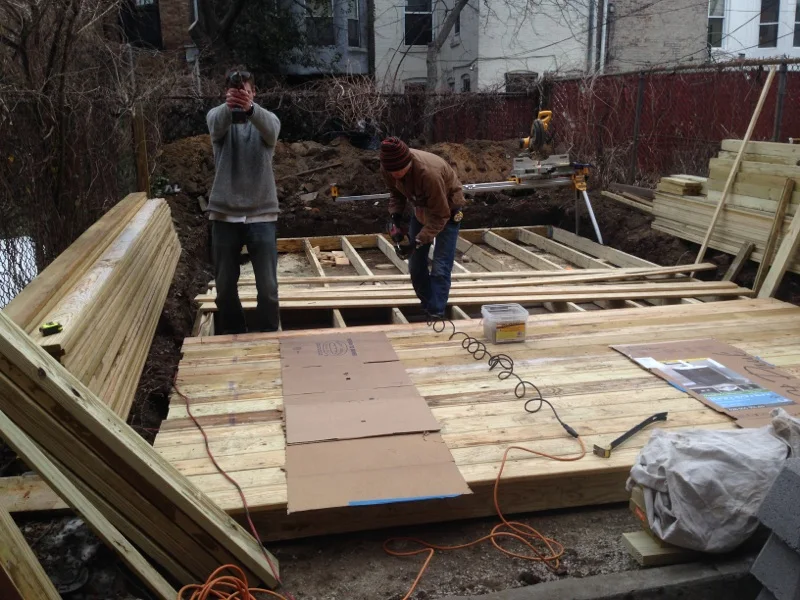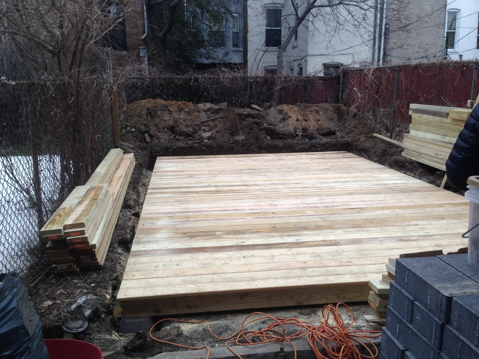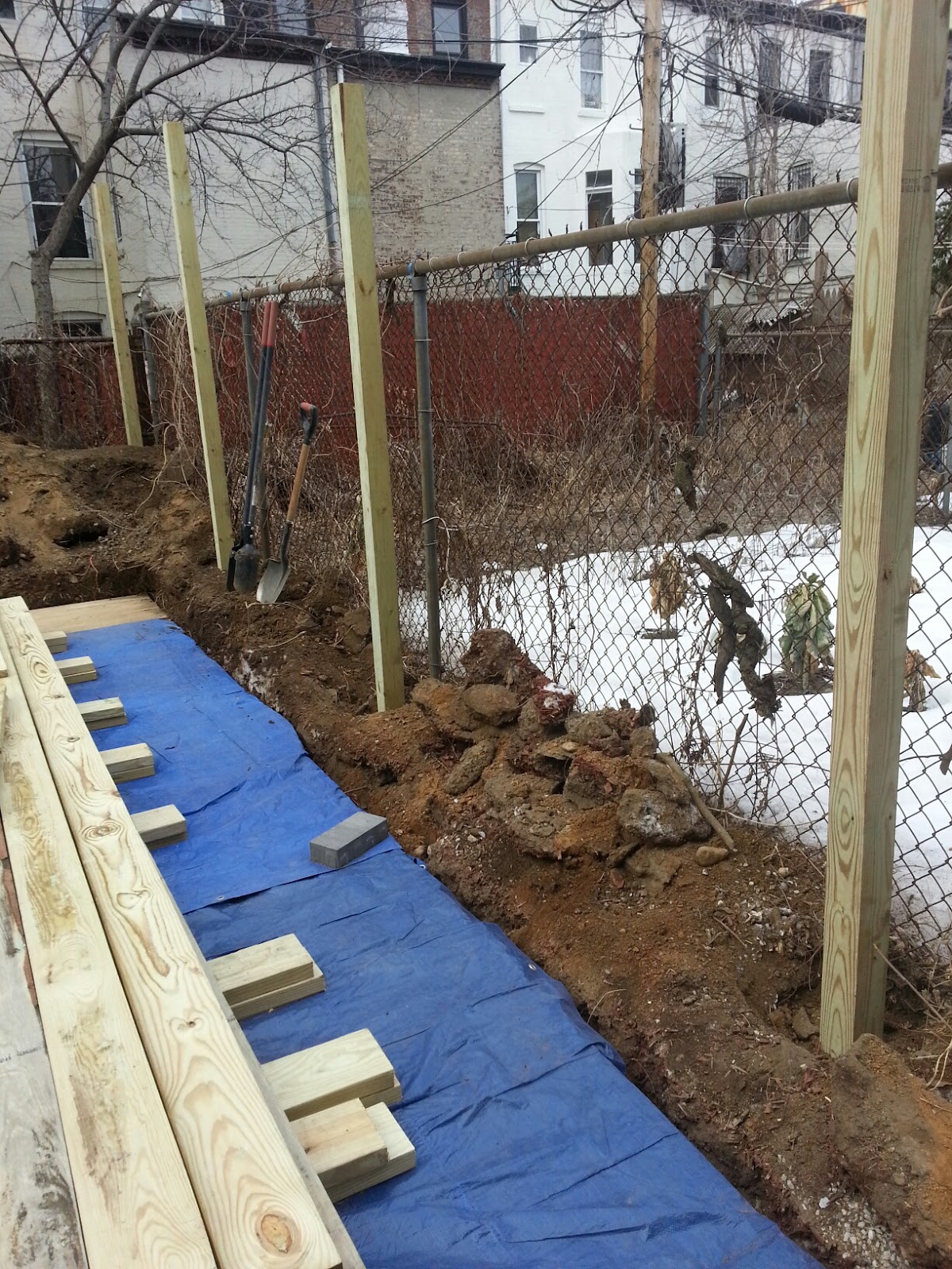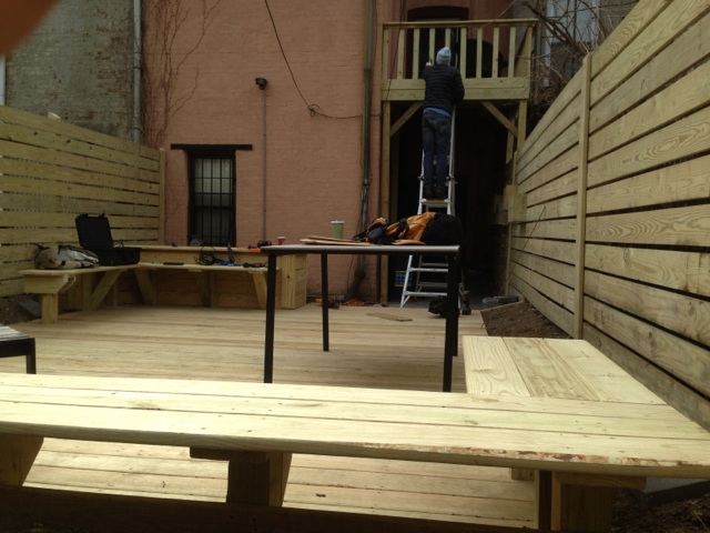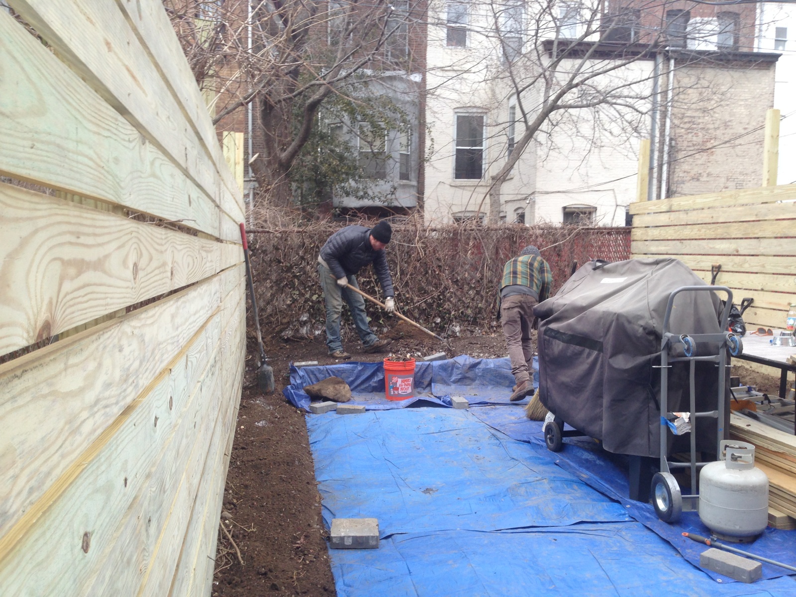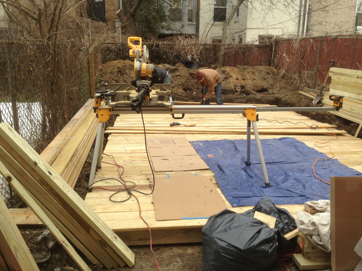 Below will be a series of photos of a typical townhouse rear yard landscape design and build taking NY Plantings about 2 weeks. a winter renovation of this outdoor space and planting when the ground was rock solid.